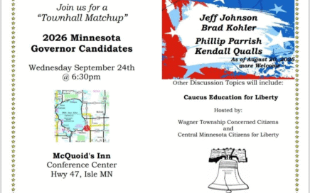 Tomorrow, Wednesday, September 24th at 6:30 pm there will be a Governors Townhall Matchup at McQuoid’s Inn & Conference Center in Isle, MN. For those of you unable to see Phillip Parrish at the monthly Kanabec County Republican Meeting held last night at Freddies, here is your chance to see him in person on Wednesday […]